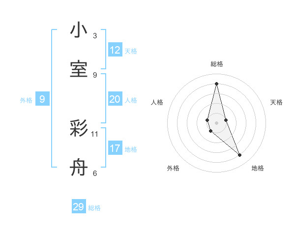 小室 彩舟さんを姓名の画数から五運を鑑定