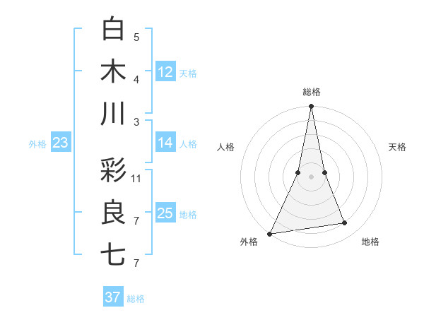 白木川 彩良七さんの総格は37画の5点!