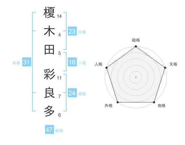 榎木田 彩良多さんを姓名の画数から五運を鑑定