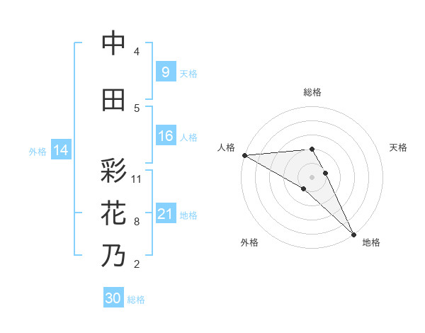 中田 彩花乃さんの総格は30画の2点!