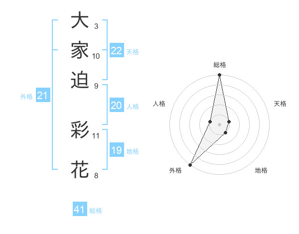 大家迫 彩花さんを姓名の画数から五運を鑑定
