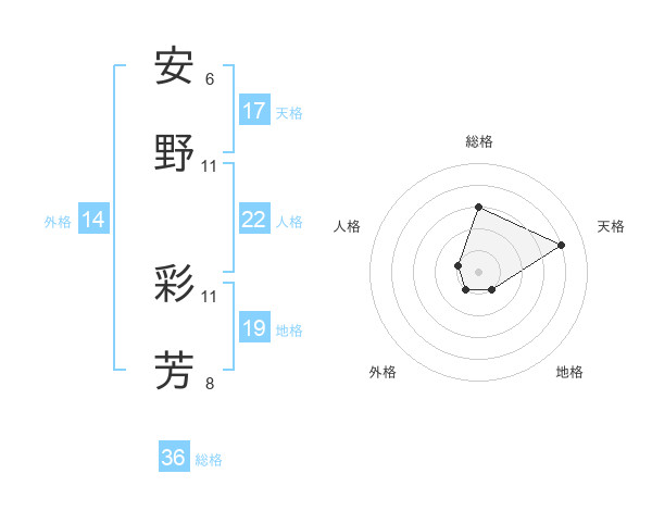 安野 彩芳さんを姓名の画数から五運を鑑定
