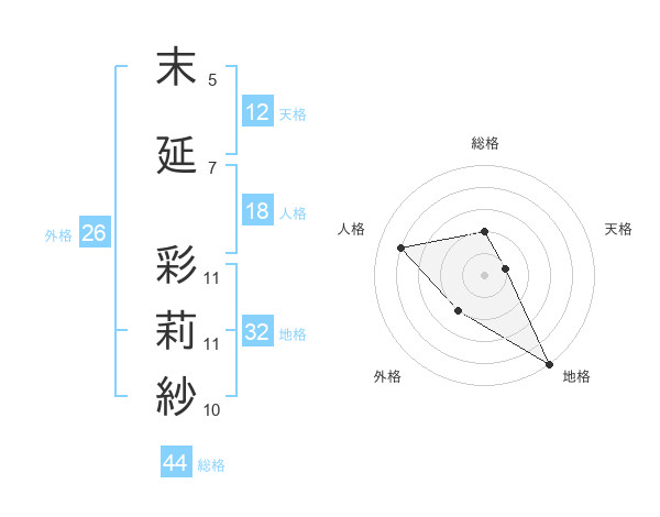 末延 彩莉紗さんを姓名の画数から五運を鑑定