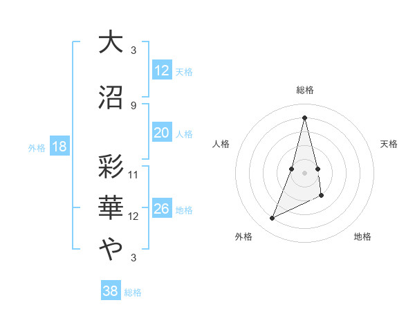 大沼 彩華やさんを姓名の画数から五運を鑑定