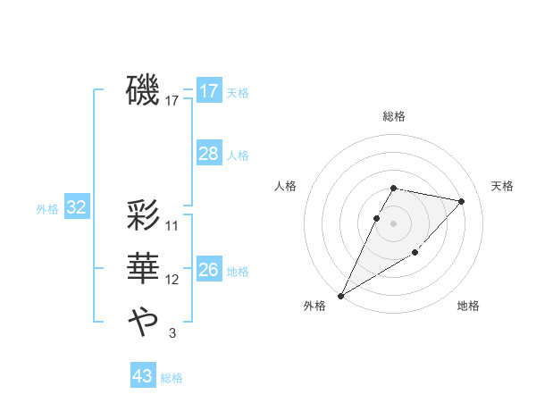 磯 彩華やさんの天格は17画の4点!