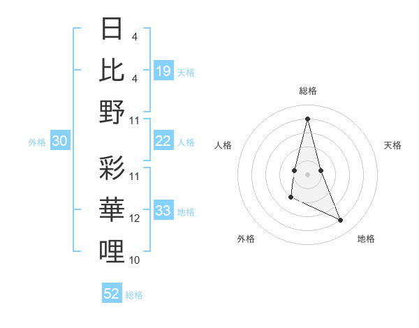 日比野 彩華哩さんの総格は52画の4点!