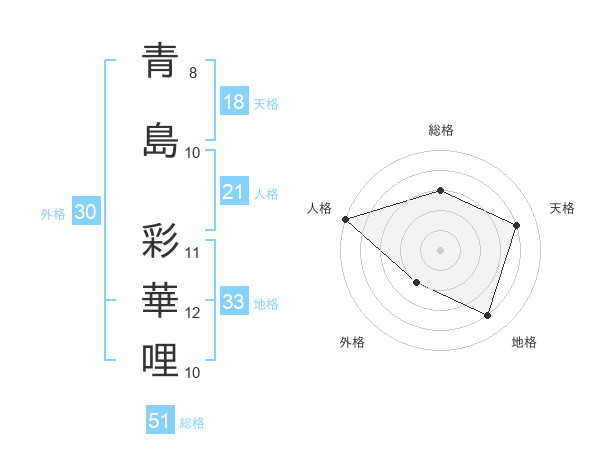 青島 彩華哩さんを姓名の画数から五運を鑑定