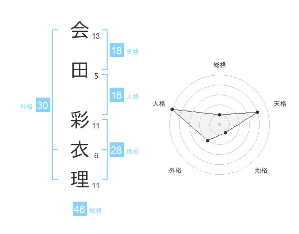 会田 彩衣理さんを姓名の画数から五運を鑑定