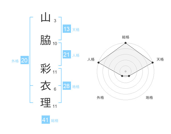 山脇 彩衣理さんを姓名の画数から五運を鑑定