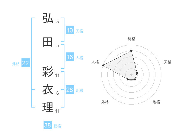 弘田 彩衣理さんを姓名の画数から五運を鑑定