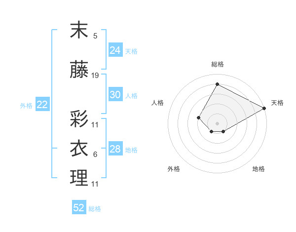末藤 彩衣理さんを姓名の画数から五運を鑑定