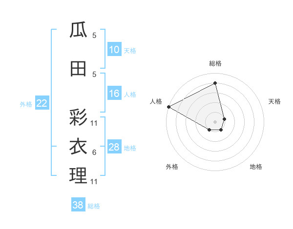 瓜田 彩衣理さんを姓名の画数から五運を鑑定