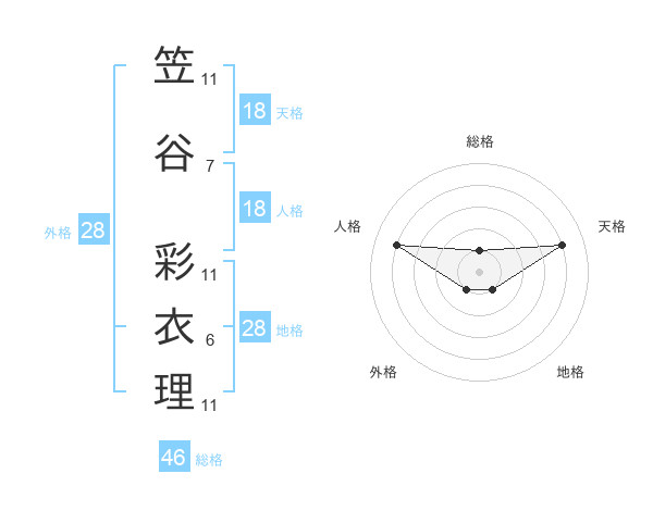 笠谷 彩衣理さんを姓名の画数から五運を鑑定