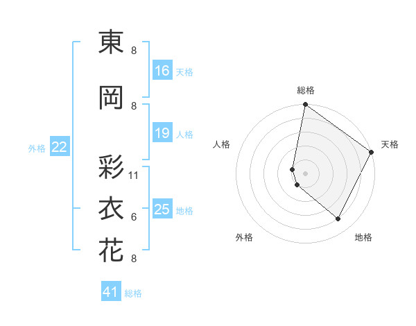 東岡 彩衣花さんを姓名の画数から五運を鑑定