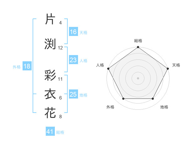片渕 彩衣花さんを姓名の画数から五運を鑑定