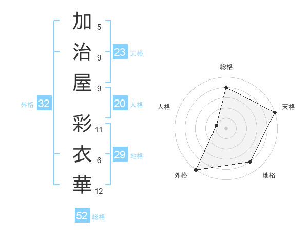 加治屋 彩衣華さんを姓名の画数から五運を鑑定