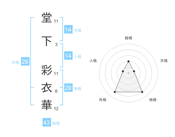 堂下 彩衣華さんを姓名の画数から五運を鑑定