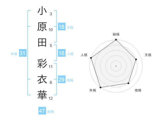小原田 彩衣華さんの外格は31画の5点!