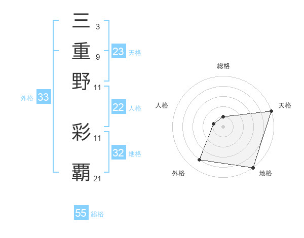 三重野 彩覇さんを姓名の画数から五運を鑑定