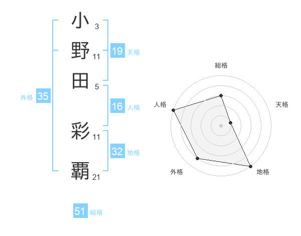 小野田 彩覇さんを姓名の画数から五運を鑑定