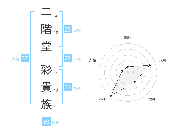 二階堂 彩貴族さんの総格は59画の1点!