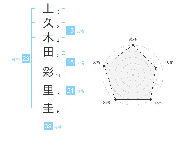 上久木田 彩里圭さんの総格は39画の5点!