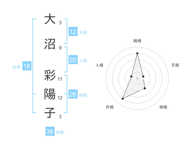 大沼 彩陽子さんを姓名の画数から五運を鑑定