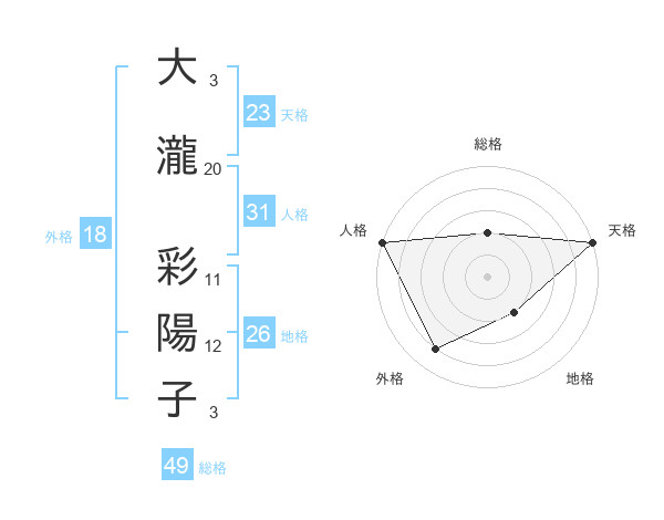 大瀧 彩陽子さんの天格は23画の5点!
