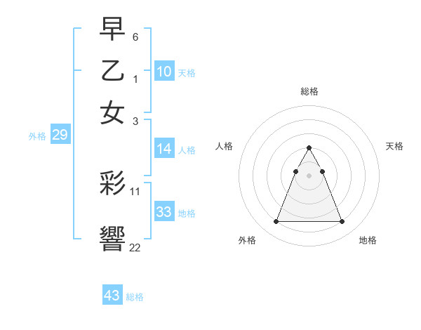 早乙女 彩響さんを姓名の画数から五運を鑑定