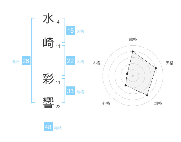 水崎 彩響さんを姓名の画数から五運を鑑定