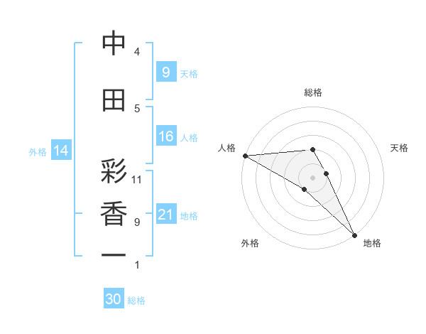中田 彩香一さんを姓名の画数から五運を鑑定