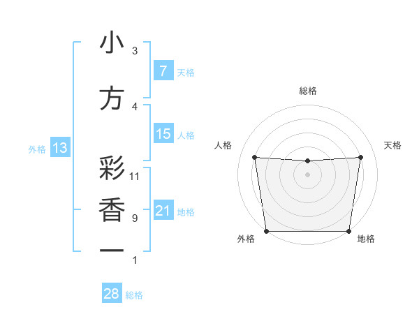 小方 彩香一さんの外格は13画の5点