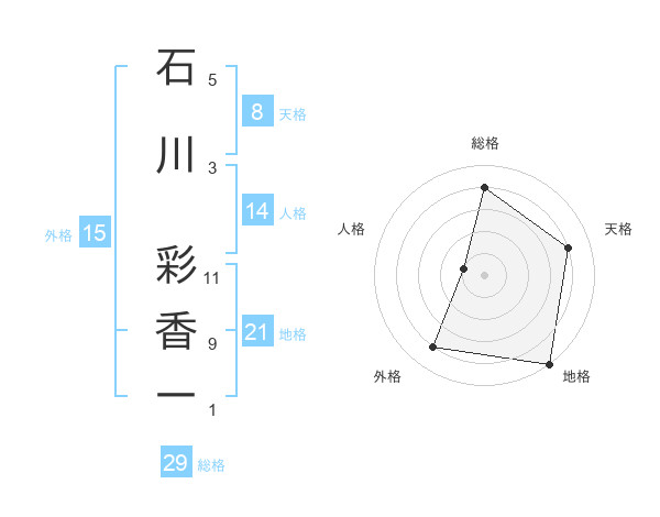 石川 彩香一さんの総格は29画の4点!