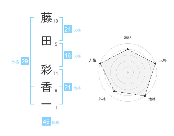 藤田 彩香一さんを姓名の画数から五運を鑑定