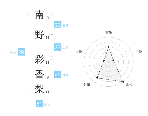 南野 彩香梨さんを姓名の画数から五運を鑑定