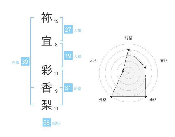 祢宜 彩香梨さんを姓名の画数から五運を鑑定