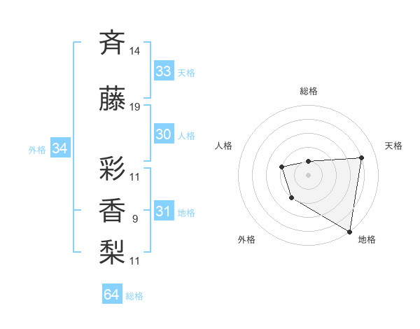 斉藤 彩香梨さんを姓名の画数から五運を鑑定