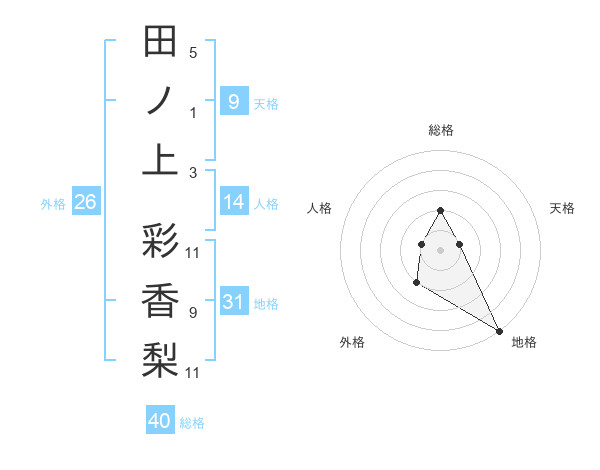 田ノ上 彩香梨さんを姓名の画数から五運を鑑定