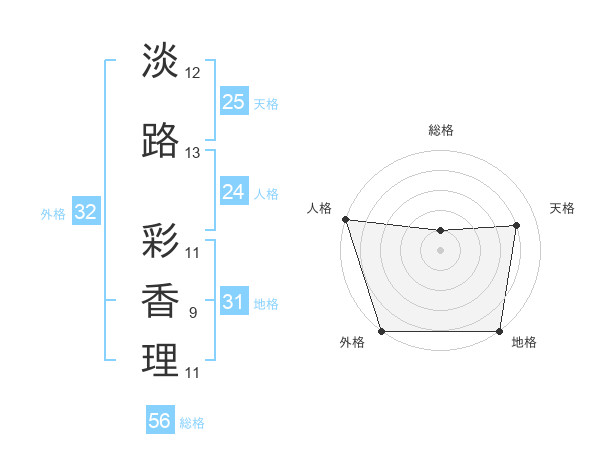 淡路 彩香理さんを姓名の画数から五運を鑑定