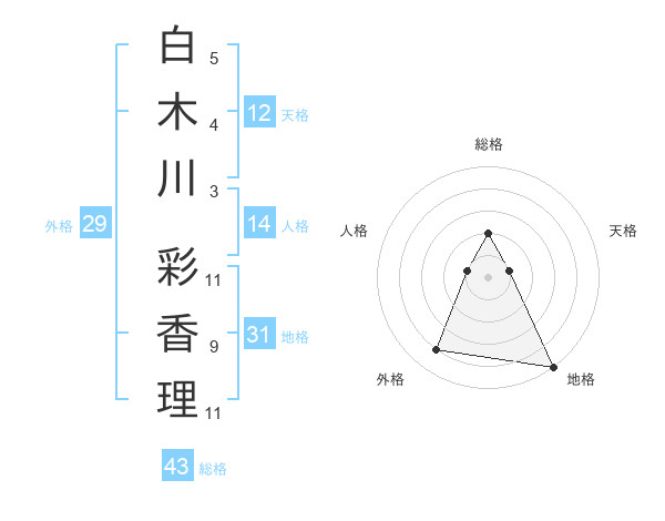 白木川 彩香理さんを姓名の画数から五運を鑑定