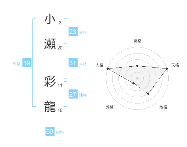 小瀬 彩龍さんを姓名の画数から五運を鑑定