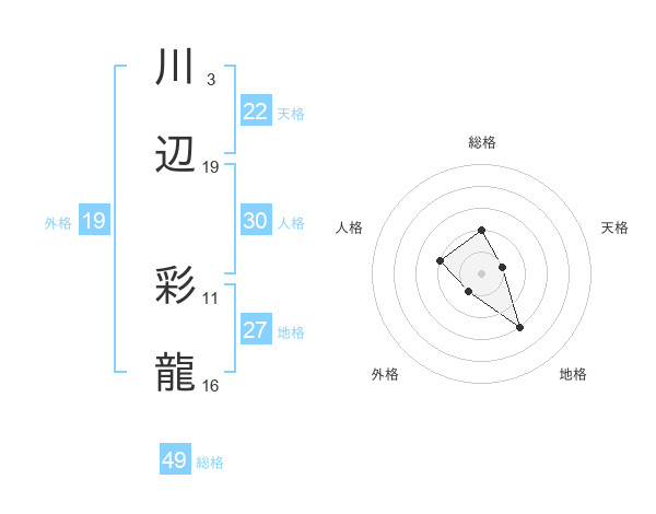 川辺 彩龍さんを姓名の画数から五運を鑑定