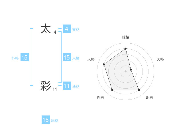 太 彩さんの外格は15画の4点!