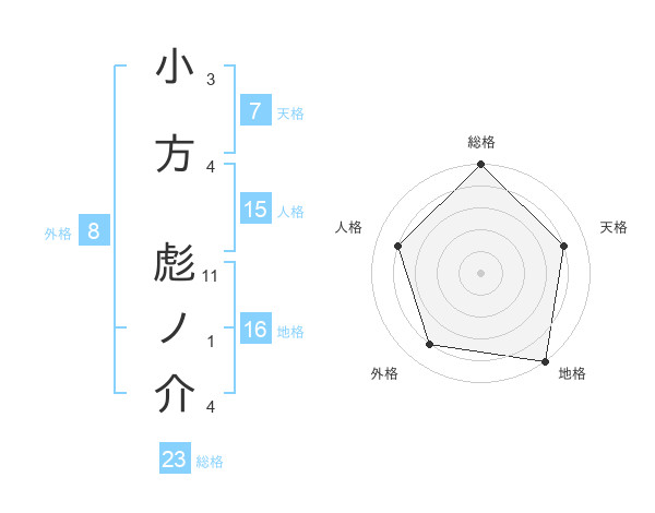小方 彪ノ介さんを姓名の画数から五運を鑑定