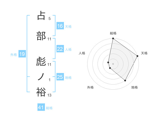占部 彪ノ裕さんを姓名の画数から五運を鑑定