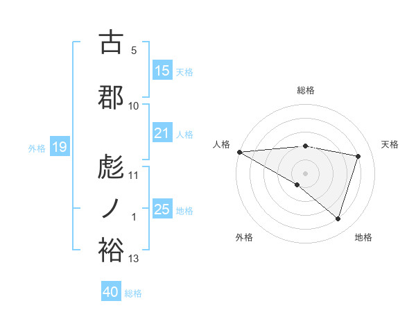 古郡 彪ノ裕さんを姓名の画数から五運を鑑定