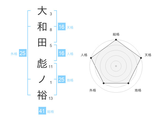 大和田 彪ノ裕さんを姓名の画数から五運を鑑定