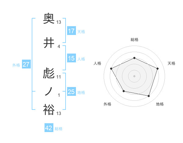 奥井 彪ノ裕さんを姓名の画数から五運を鑑定