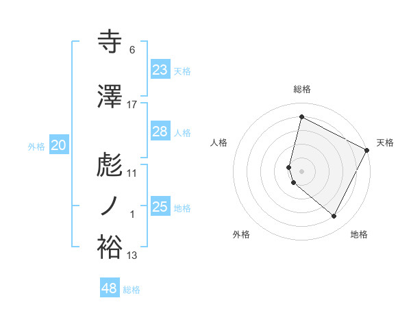 寺澤 彪ノ裕さんの天格は23画の5点!