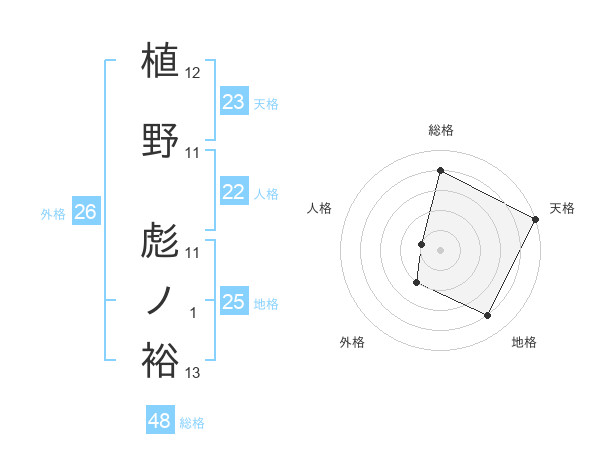 植野 彪ノ裕さんを姓名の画数から五運を鑑定